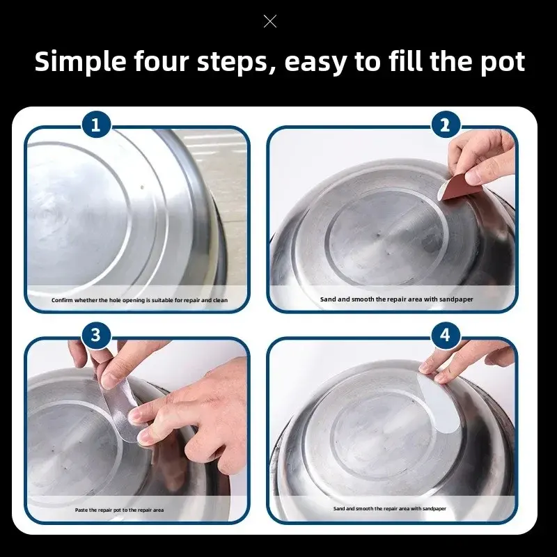สติกเกอร์กันน้ำแบบแผ่นอะลูมิเนียมฟอยล์สำหรับซ่อมแซมภาชนะในครัว เช่น หม้อ ชาม อ่าง ถัง และโถ แบบขายส่ง