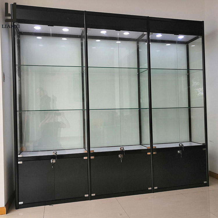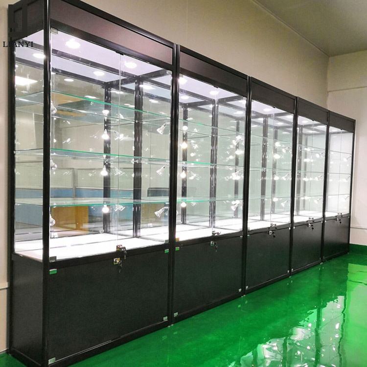 ตู้โชว์กระจกอะลูมิเนียมพร้อมไฟ LED สำหรับร้านค้าปลีก ขายส่ง