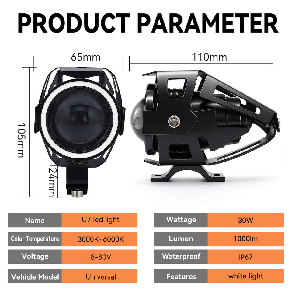 ไฟสปอร์ตไลท์ LED U7 อลูมิเนียมขายส่ง กันน้ำ IP67 ไฟเสริมหน้ารถมอเตอร์ไซค์ ไฟวงแหวน ไฟตัดหมอก ไฟหน้าแบบแฟลช ซุปเปอร์