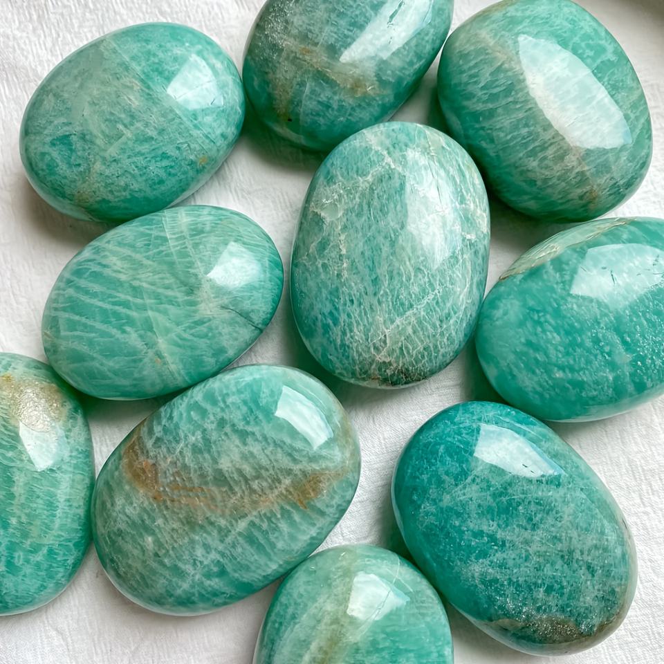คริสตัลอะเมซอนไนต์ทรงรีขัดเงาธรรมชาติสำหรับขายส่ง เหมาะสำหรับตกแต่งบ้านและเป็นของขวัญในวันหยุด