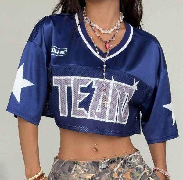 เสื้อครอปทีมฟุตบอลของผู้หญิงชุดออกกำลังกายผ้าโพลีเอสเตอร์แห้งเร็วระบายอากาศได้ดีเสื้อ100%