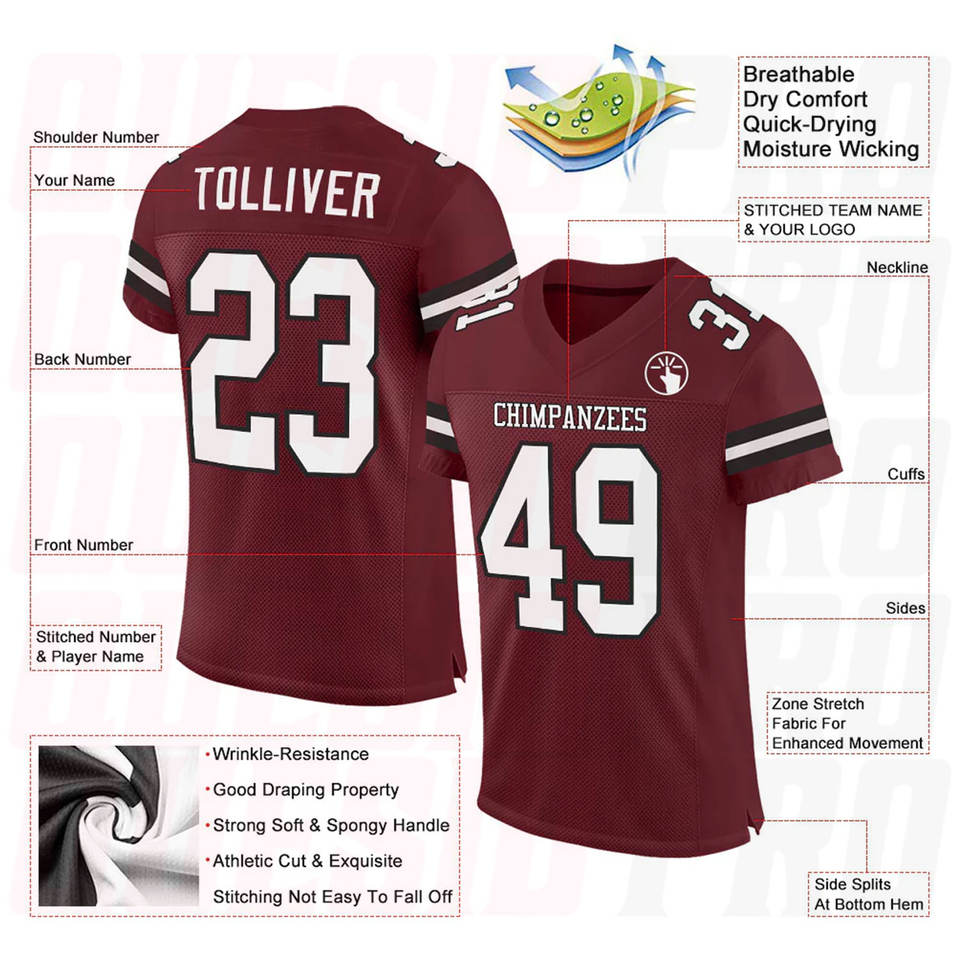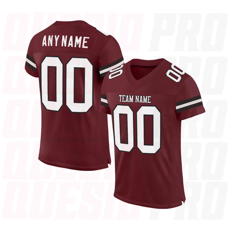 เสื้อฟุตบอลอเมริกันขายส่งแบบกำหนดเองสำหรับผู้ชาย สีแดงเบอร์กันดี ขาว-ดำ เสื้อฟุตบอลอเมริกันสำหรับฤดูร้อน แห้งเร็ว ชุดกีฬา