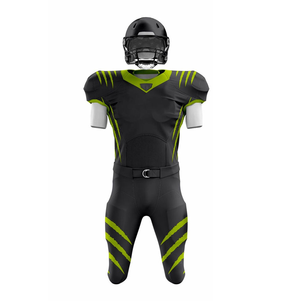 ชุดยูนิฟอร์มอเมริกันฟุตบอลขายส่ง ชุดเสื้อ กางเกง หมวก ถุงเท้า แบบกำหนดเองสำหรับทีม รับพิมพ์ลายแบบ Sublimation รับผลิตแบบ OEM ODM ชุดกีฬา