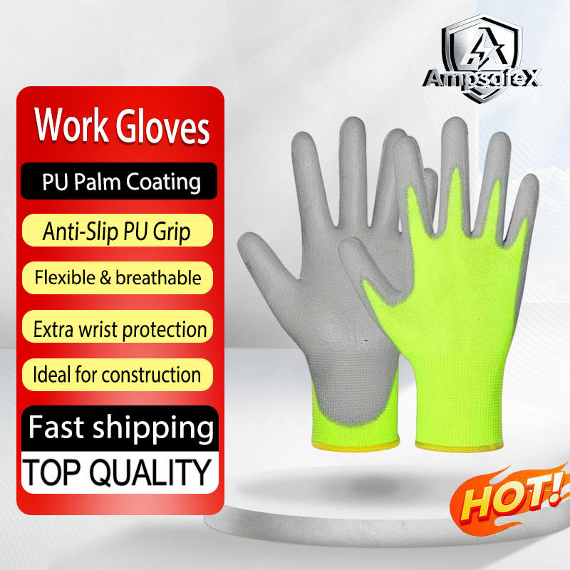 ถุงมือทำงานนิรภัยแบบสะท้อนแสง AmpsafeX ขายส่ง | ถุงมือถักไร้ตะเข็บ 7 ออนซ์ เคลือบไนไตรล์ กันลื่น ปรับแต่งได้ ไม่ผสมแป้ง ขนาด 26 ซม.