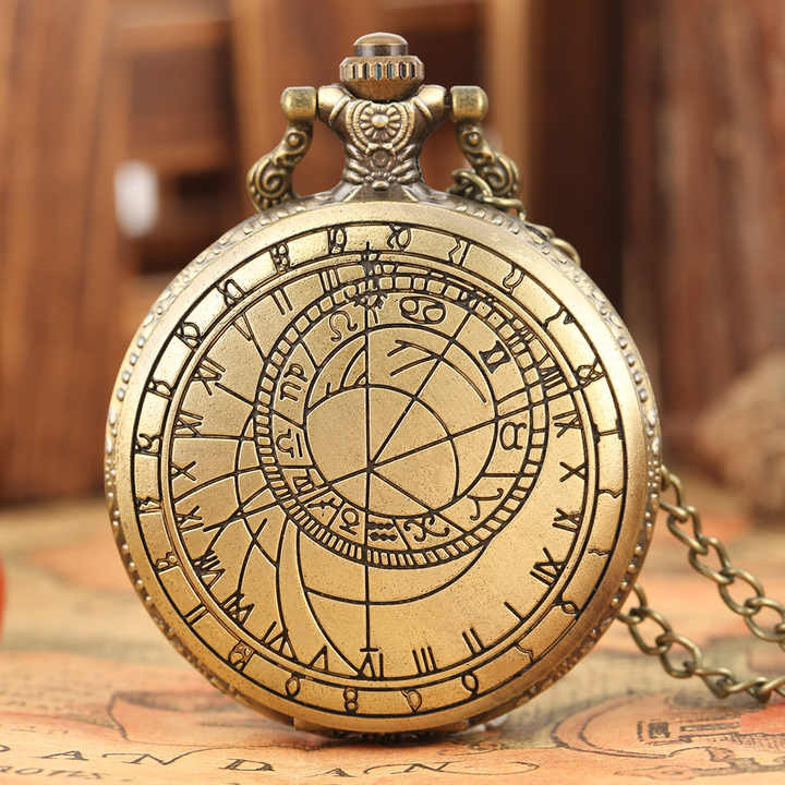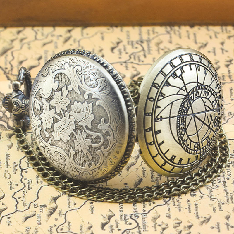นาฬิกาพกโบราณแบบอะนาล็อก ควอตซ์ พร้อมสายโซ่และเข็มทิศ รุ่นปราก ขายส่ง