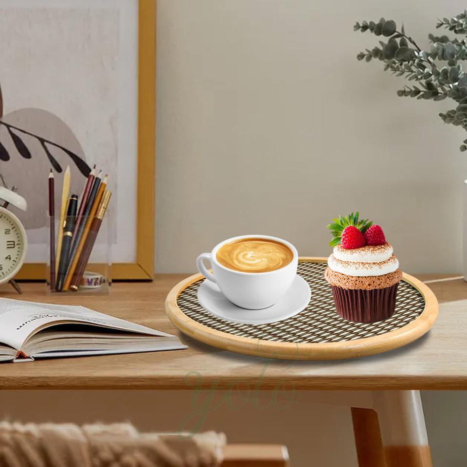 ถาดไม้หวายทรงกลมสำหรับเสิร์ฟอาหารโต๊ะทานข้าวและชาแบบโบราณใช้ตกแต่งโต๊ะทีวีทำจากไม้สานแบบหมุนได้ถาดเสิร์ฟอาหาร