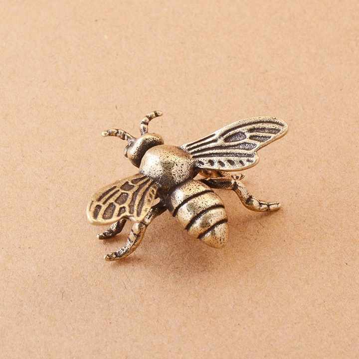 ของตกแต่งขนาดเล็กสำหรับวางบนโต๊ะทำงาน รูปผึ้งทำมือ ชุบทองแดงแท้ งานโบราณ ขายส่ง สำหรับตกแต่งบ้านหรือสำนักงาน แกะสลักอย่างละเอียด