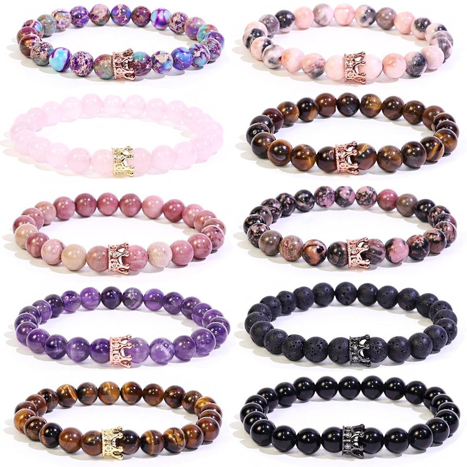 ขายส่งสร้อยข้อมือลูกปัดคริสตัลทรงมงกุฎ 8 มม. ยี่ห้อ Aonaya สำหรับทุกเพศ ดีไซน์ทันสมัย ยืดหยุ่น รูปทรงกลม เหมาะเป็นของขวัญวันครบรอบแต่งงาน