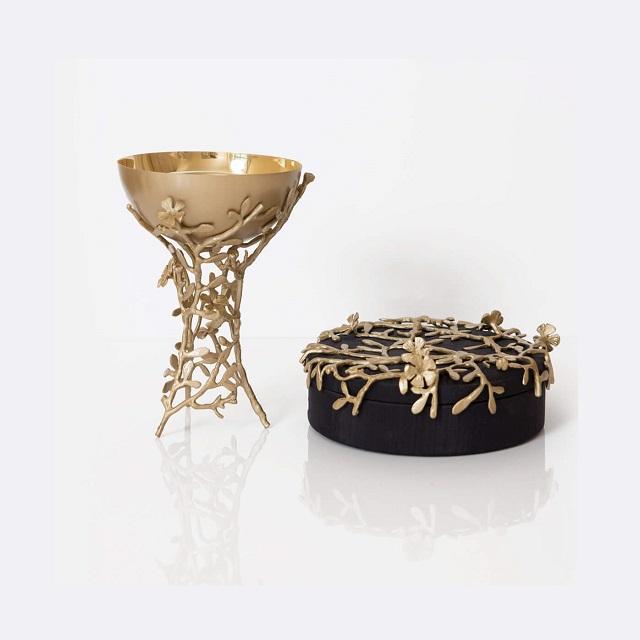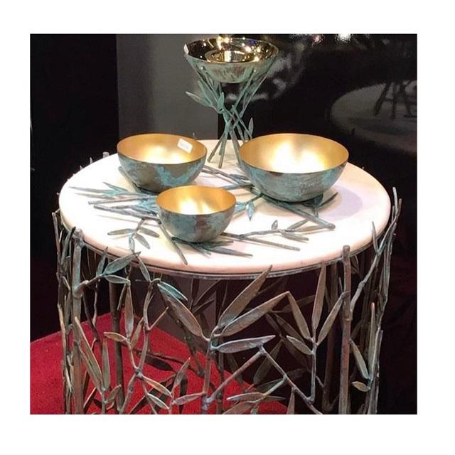 เตา bakhoor ทองเหลืองทรงกลมพร้อมชามทองเหลืองและที่เซิร์ฟเวอร์ถั่ว