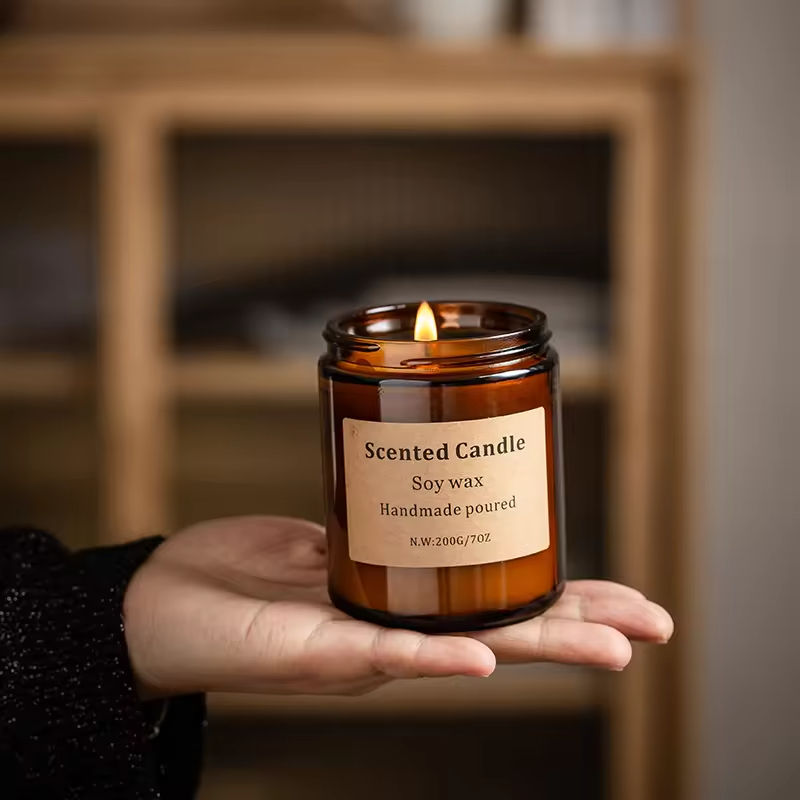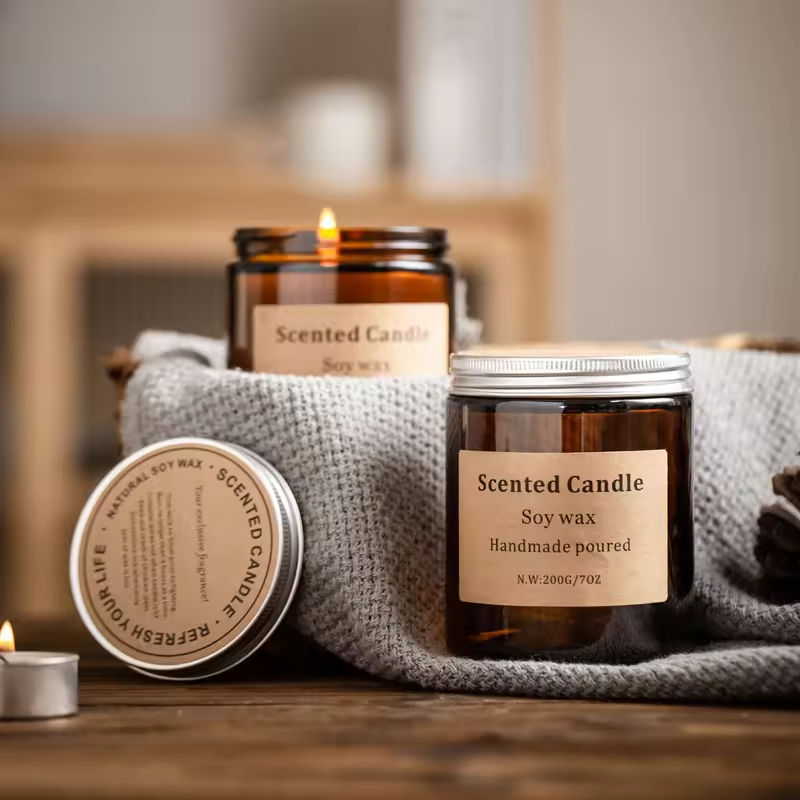 เทียนหอมกลิ่นอโรมาเธอราพีสำหรับตกแต่งบ้านสไตล์วินเทจในขวดแก้วมีฝาปิด ทำจากขี้ผึ้งถั่วเหลืองธรรมชาติ 100% บรรจุกล่อง ขายส่ง