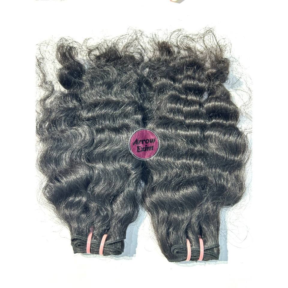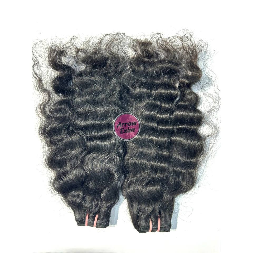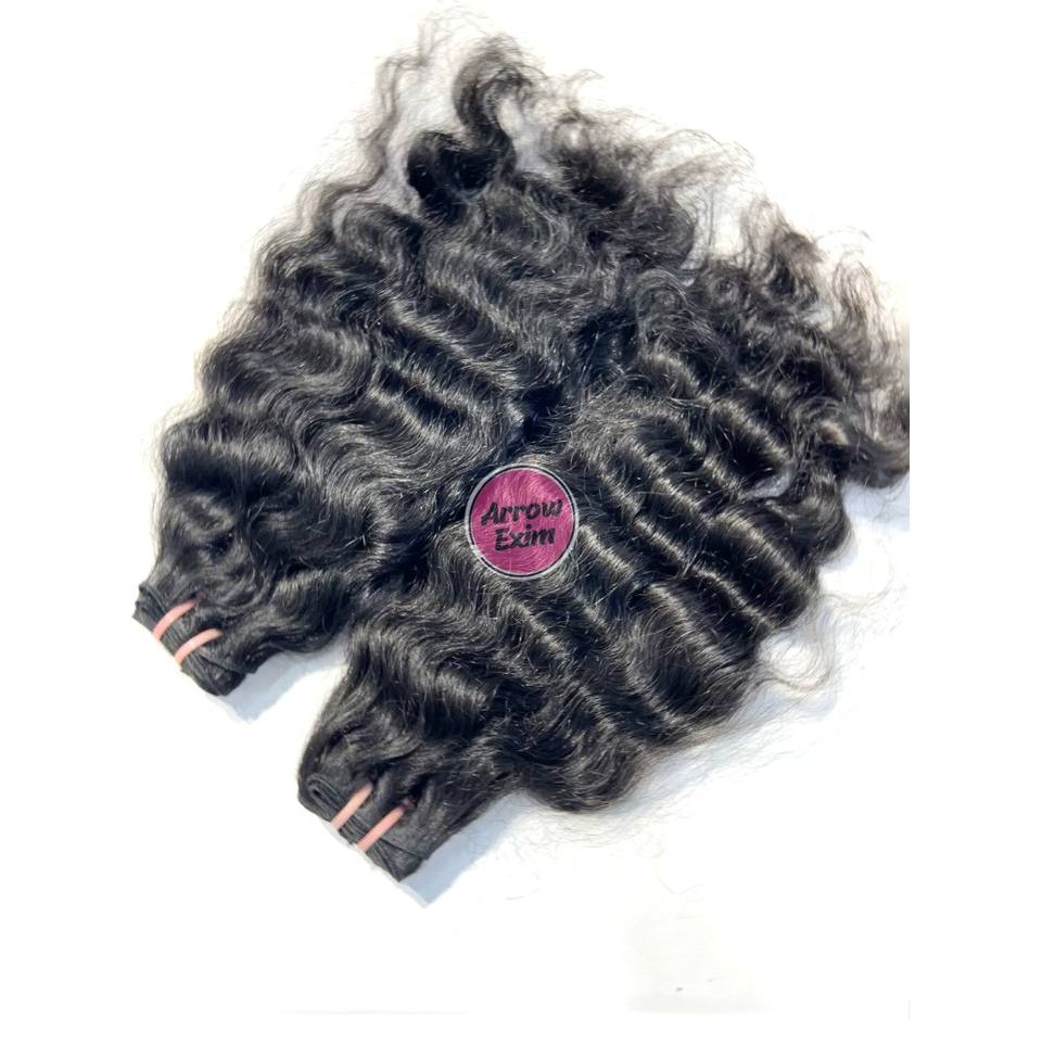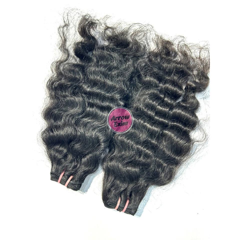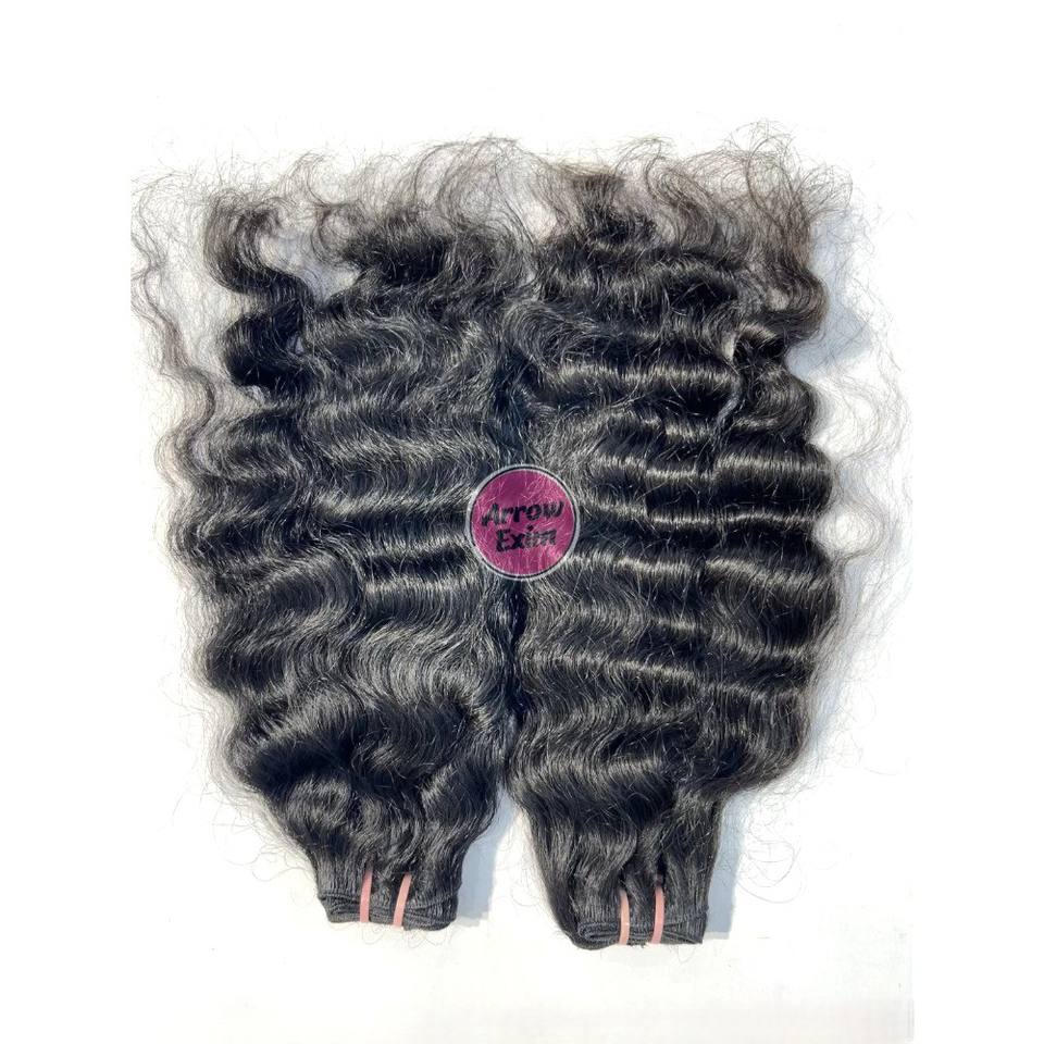 ผมต่ออินเดียแท้ 100% ยี่ห้อ Wholesale Arrow Exim แบบเรมี่ จัดเรียงเกล็ดผม แบบดับเบิ้ลเวฟท์ ไม่ผ่านการแปรรูป แบบมัดเป็นช่อ ผมหยิกธรรมชาติ