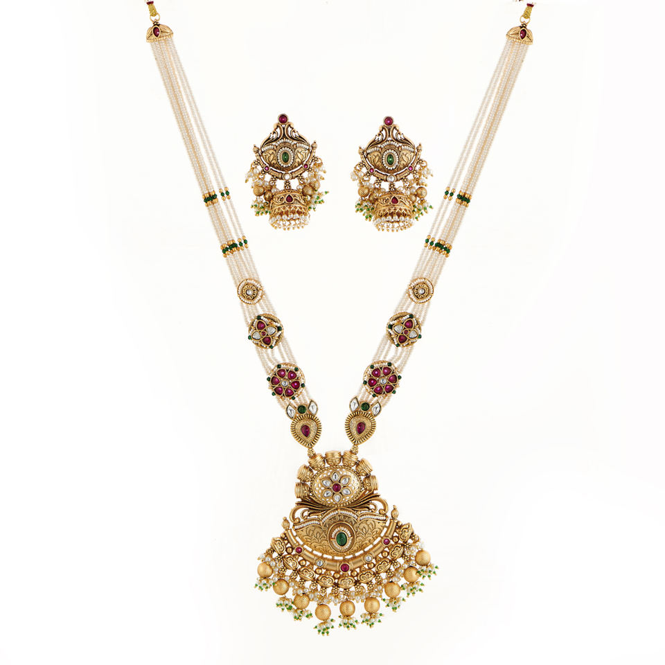 ขายส่งประดิษฐ์โบราณเคลือบทองชุดสร้อยคอยาวพร้อมไข่มุกในเครื่องประดับ Polki สําหรับผู้หญิง