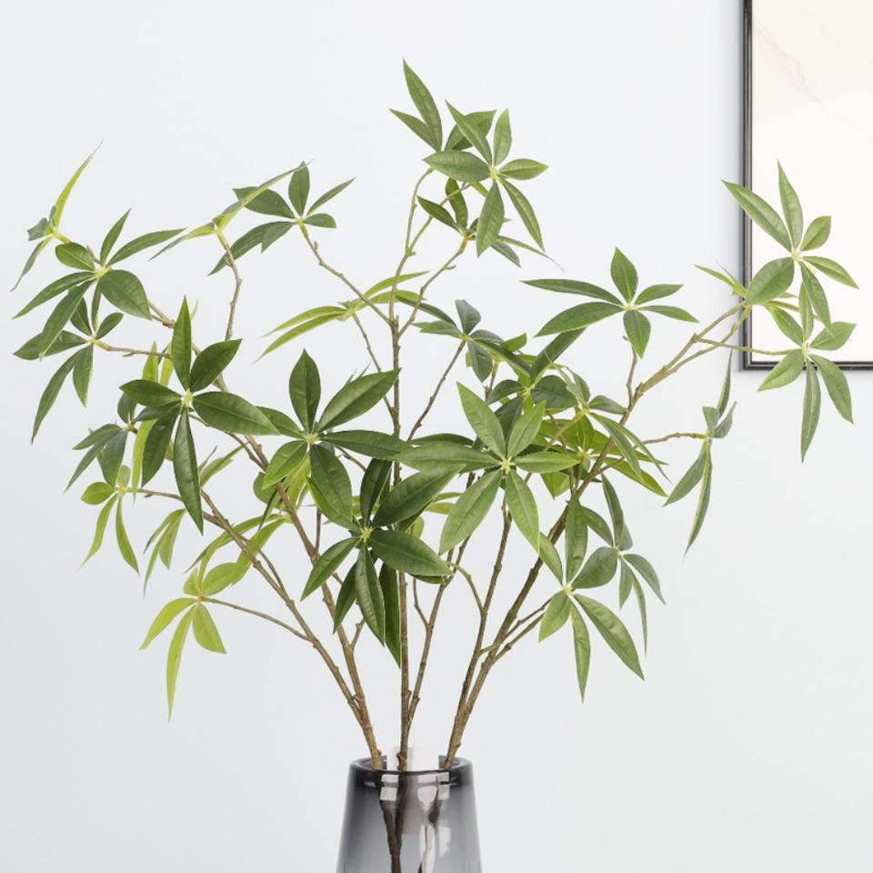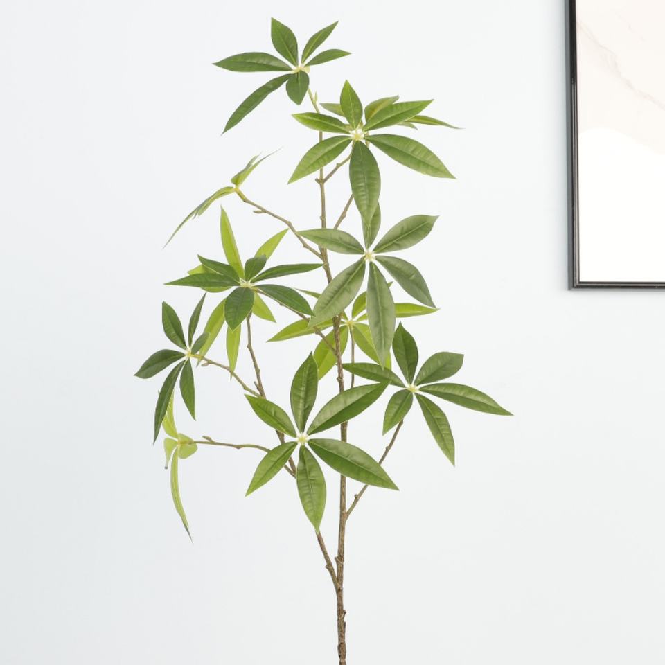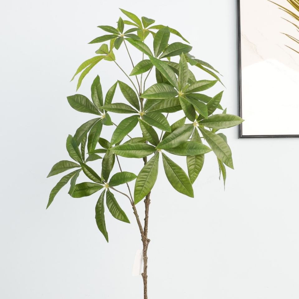 Wholesale Artificial Money Rich Leaves Green Silk Fabric Leaf Branch for Table Simulation Pachira Leaves for Office Hotel Home