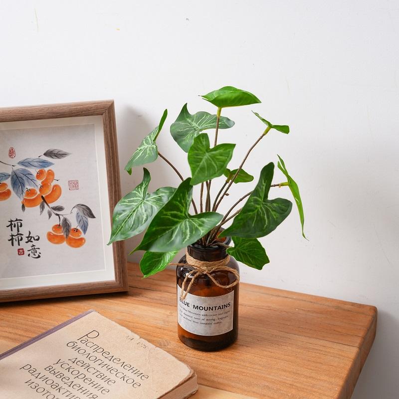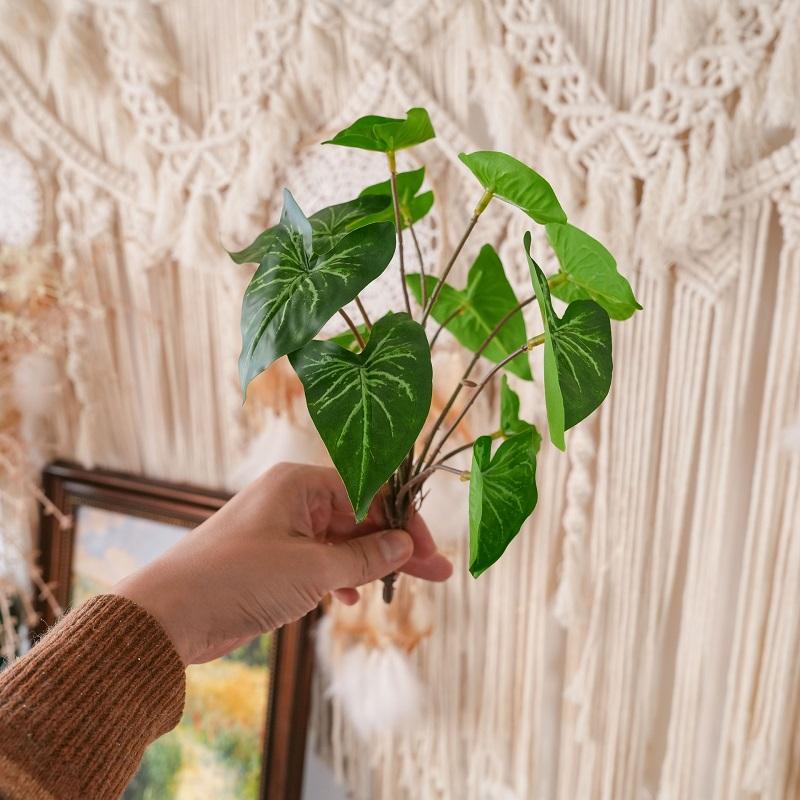 ใบไม้ประดิษฐ์ขายส่ง ใบไม้เขตร้อน ก้านใบสีเขียว สำหรับงานแต่งงาน แจกัน จัดดอกไม้