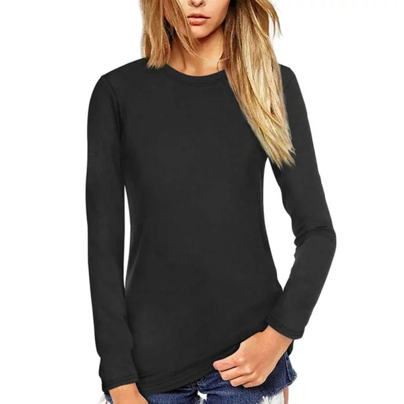 เสื้อยืดแฟชั่นผู้หญิงสีพื้นเป็นมิตรต่อสิ่งแวดล้อมสำหรับฤดูใบไม้ร่วงสีล้วนขนาดพลัสไซส์ออกแบบได้ตามต้องการแห้งเร็วระบายอากาศได้ดี
