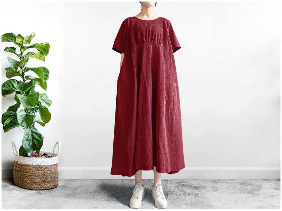 ชุดเดรสแฟชั่นสไตล์ตะวันตกลำลองคอวีแขนยาวสีพื้นระบายอากาศ
