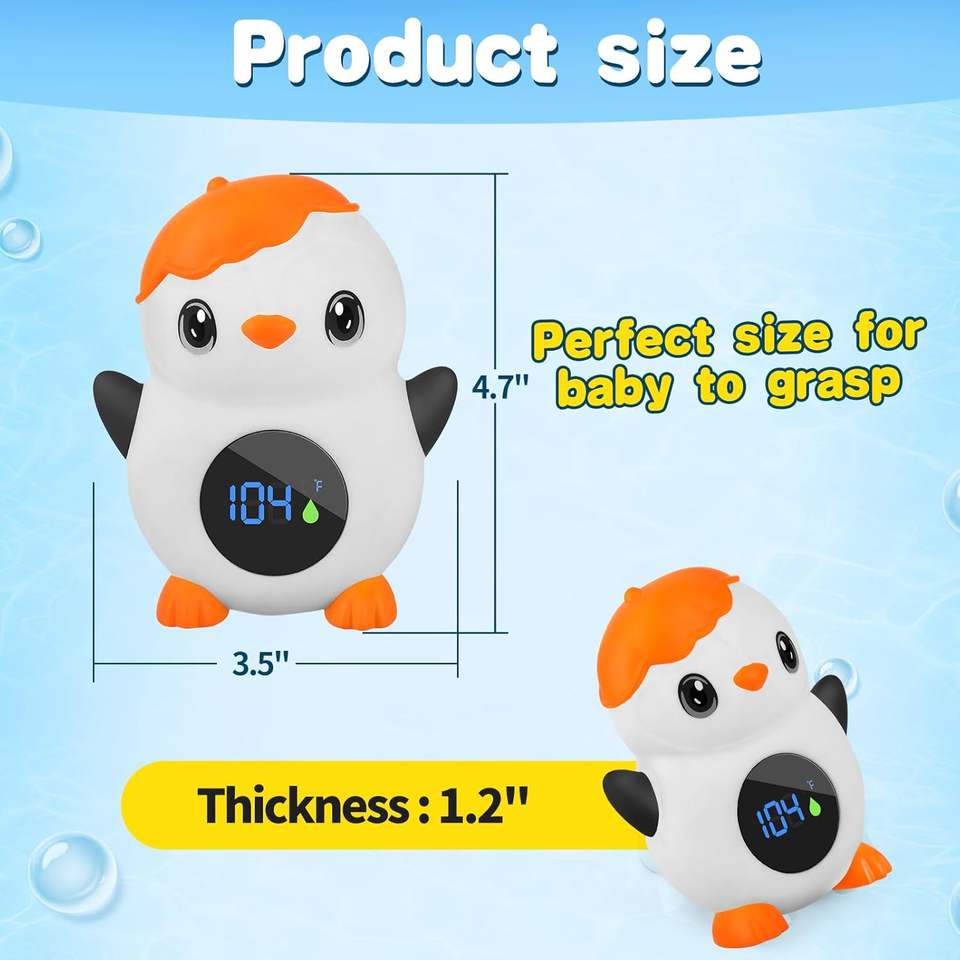 ชุดเทอร์โมมิเตอร์วัดอุณหภูมิน้ำอาบน้ำเด็กแบบขายส่ง - รูปทรงเพนกวินพลาสติก ชาร์จไฟได้ พร้อมเซ็นเซอร์อัจฉริยะเพื่อการตรวจสอบอย่างปลอดภัย
