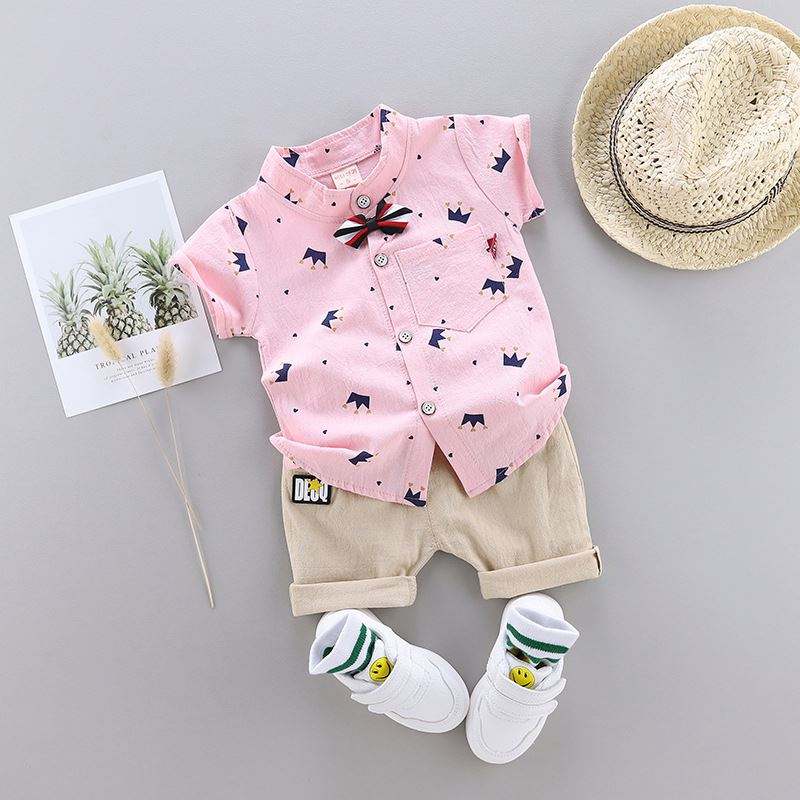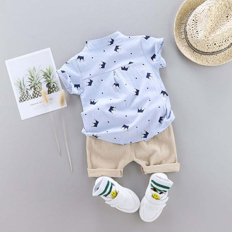 ชุดเสื้อผ้าเด็กผู้ชายน่ารักแฟชั่นมงกุฎ ชุดฤดูร้อน 2 ชิ้น เสื้อและกางเกง