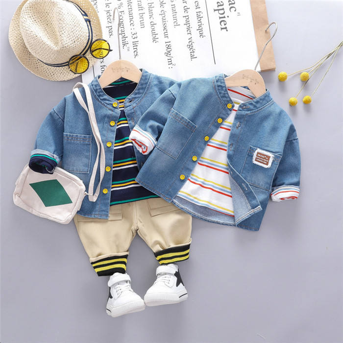 เสื้อแจ็คเก็ตยีนส์เด็กผู้ชายขายส่ง เสื้อโค้ทเด็กพร้อมกางเกงเด็ก ชุดเสื้อผ้าเด็ก ผลิตในจีน