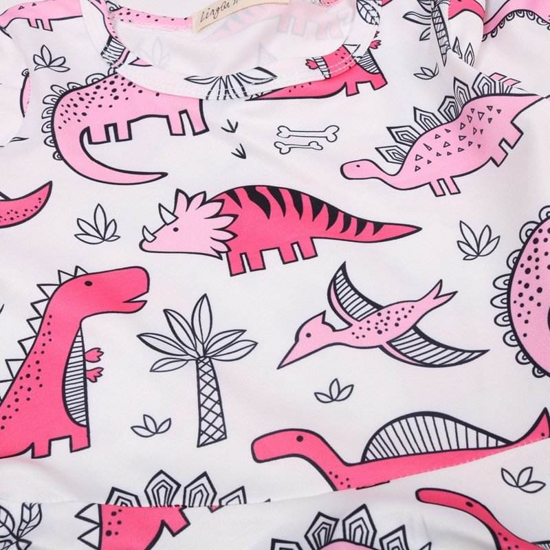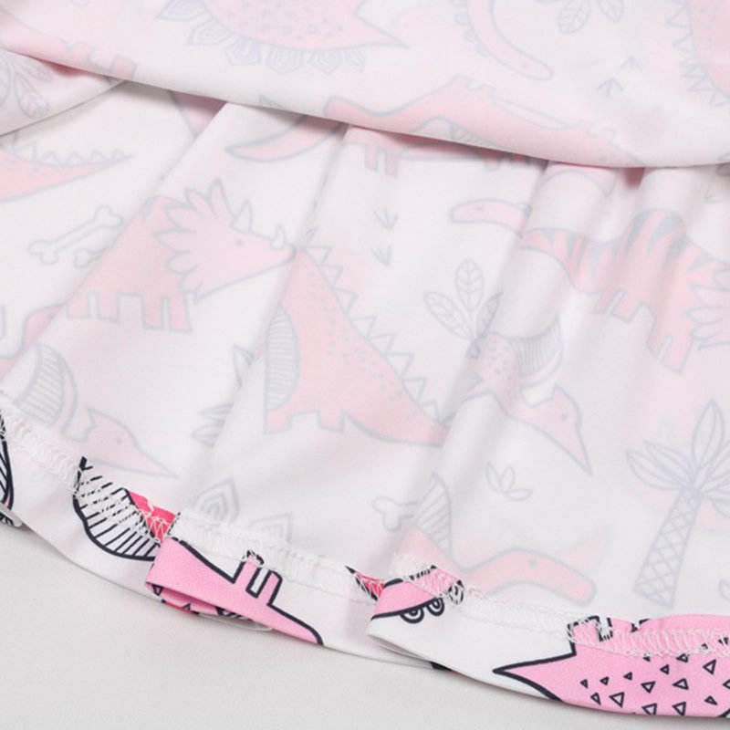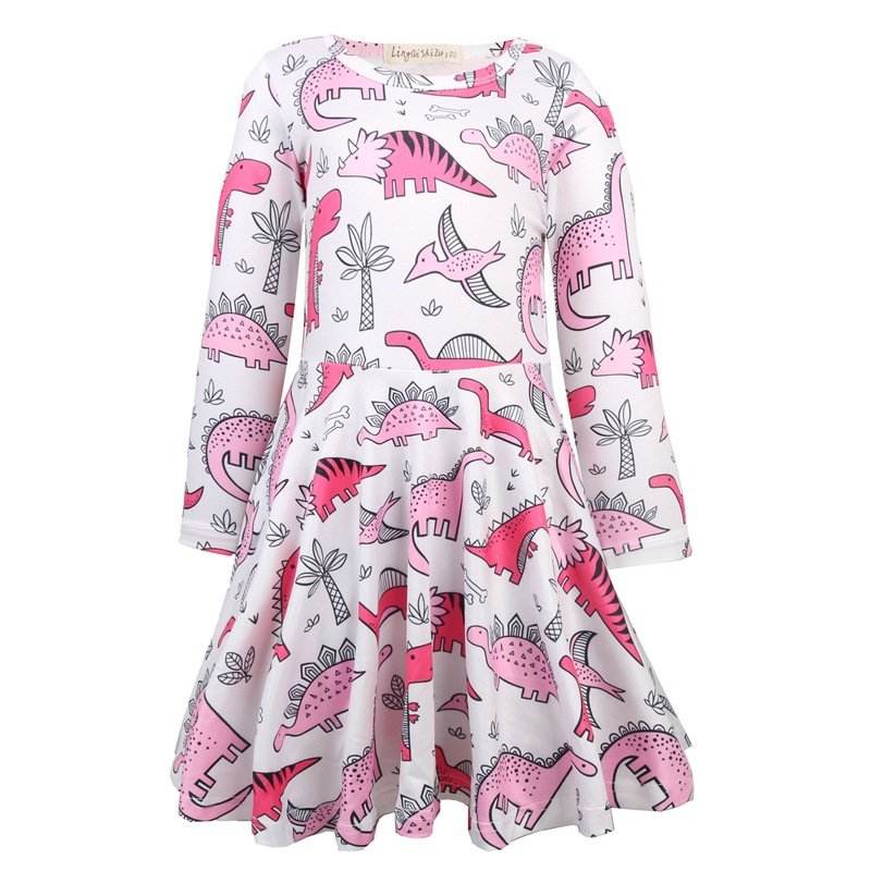 เดรสแฟชั่นสำหรับเด็กผ้าฝ้ายแขนยาวพิมพ์ลายไดโนเสาร์สีสันสดใสใส่ได้ทุกฤดู