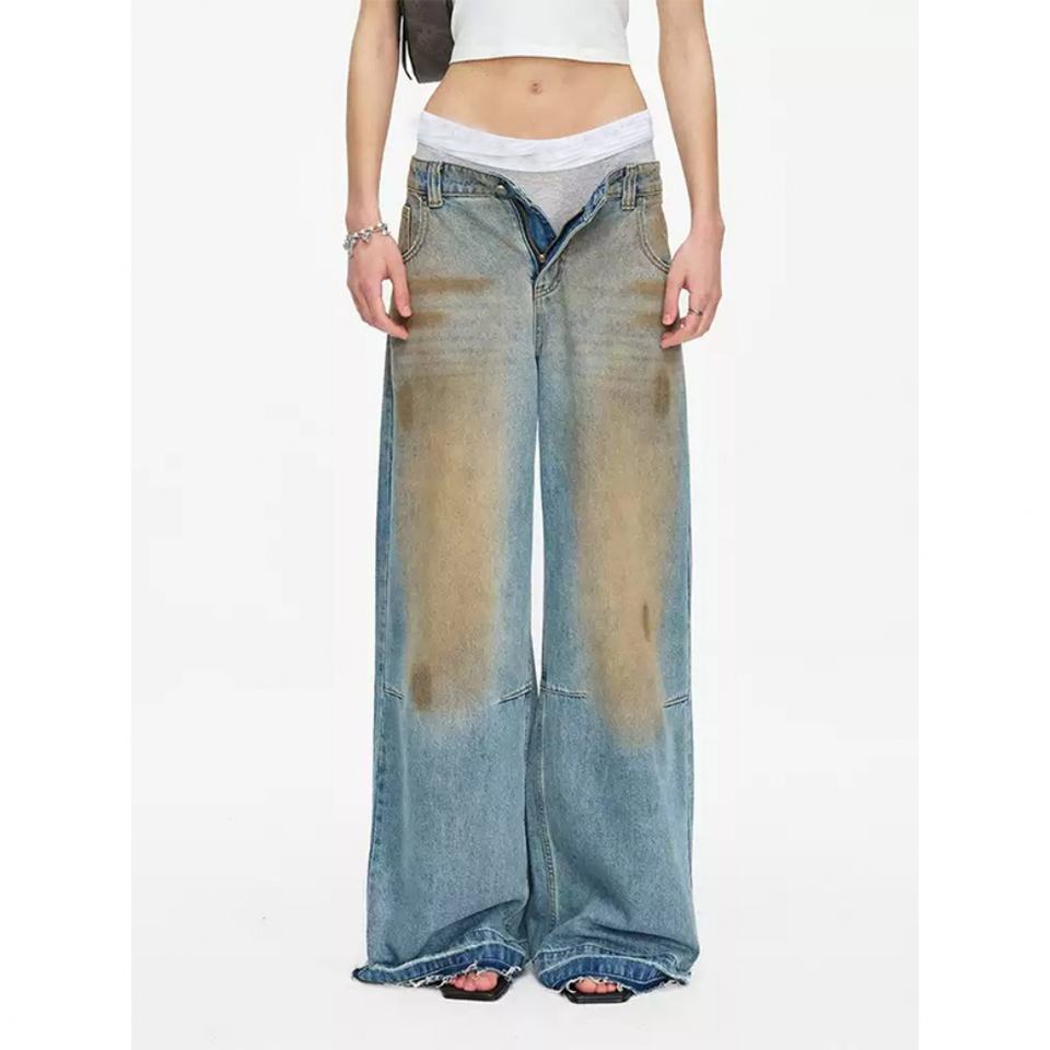 กางเกงยีนส์สีน้ำเงินทรงหลวมสำหรับผู้หญิง ขายส่ง ผ้าเดนิมคอตตอน 100% ล้างสีแบบ Dirty Wash สไตล์วินเทจ กางเกงพลัสไซส์ทรง Boyfriend