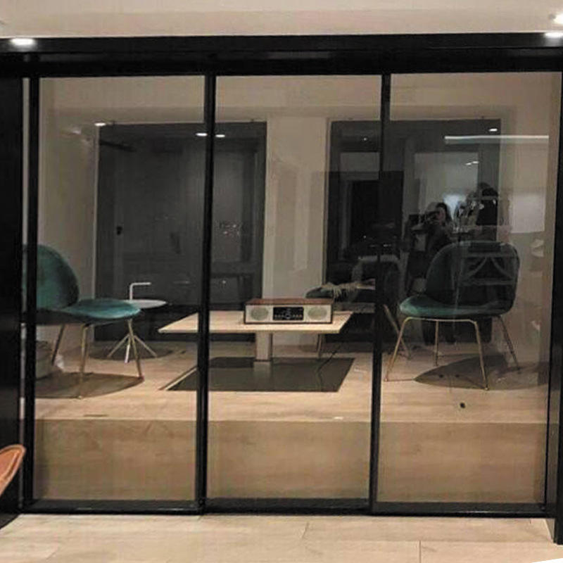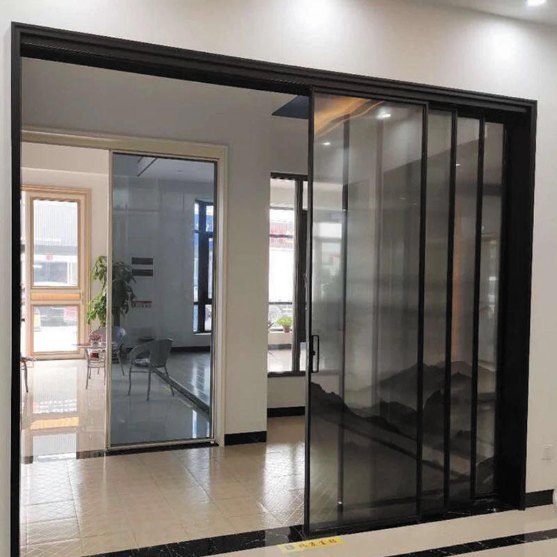 ประตูบานเลื่อนอลูมิเนียมสำหรับระเบียงห้องนั่งเล่นห้องทำงาน ประตูบานเลื่อนกระจกกรอบบางสไตล์มินิมอลสำหรับห้องน้ำภายในบ้าน ขายส่ง