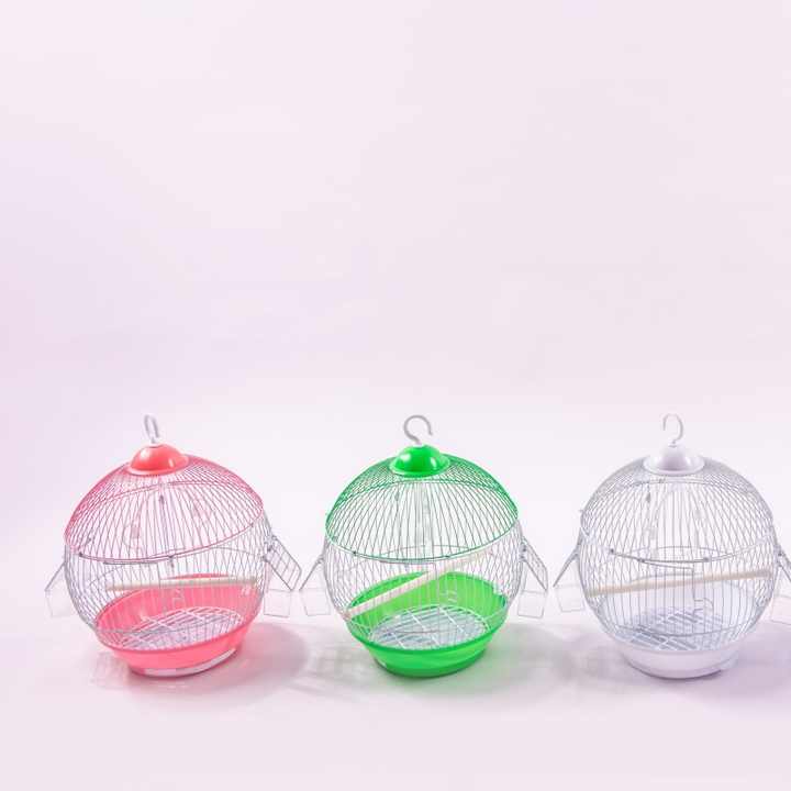 กรงนกพกพาแบบลวดเหล็กรูปทรงกลมสำหรับนกแก้วและนกสตาร์ลิงขายส่ง