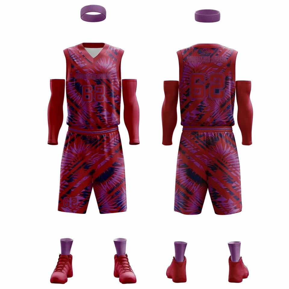 ชุดเสื้อและกางเกงบาสเก็ตบอลขายส่ง ชุดยูนิฟอร์มทีมแบบกำหนดเอง พิมพ์ลายแบบซับลิเมชั่น แห้งเร็ว ระบายอากาศได้ดี ชุดกีฬา OEM