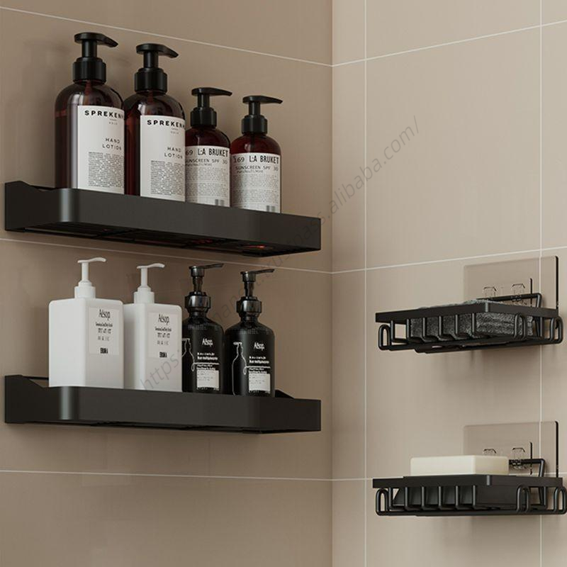 ชั้นวางของในห้องน้ำแบบติดผนังพร้อมที่เก็บสบู่สีทอง ชุดกล่องใส่เครื่องปรุงในครัว ขายส่ง