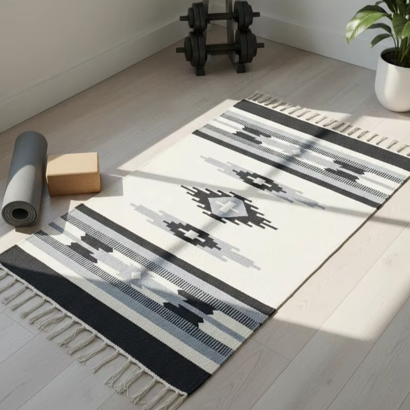 พรมปูพื้น/พรมปิคนิค ลายดอกไม้ทันสมัย ทำมือจากผ้าฝ้ายอย่างดี ซักได้ นุ่มสบาย ใช้ได้สองด้าน สามสี เหมาะสำหรับการสวดมนต์ ปิกนิก และการเดินทาง ขายส่ง