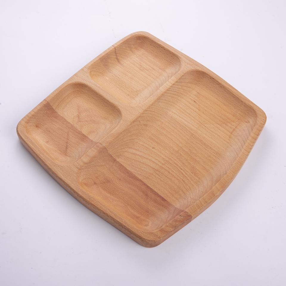 จานไม้บีชแบบแบ่งส่วนขายส่ง | จานอาหารทรงสี่เหลี่ยม 3 ช่อง