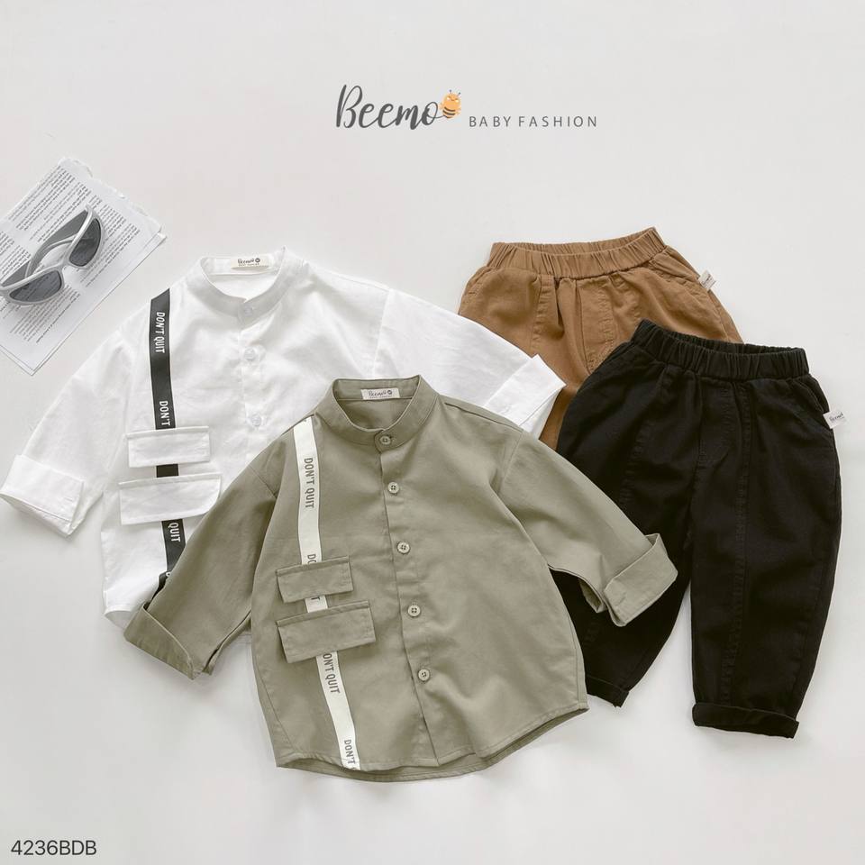 ชุดลำลองเด็กผู้ชาย แบรนด์ Beemo สำหรับฤดูใบไม้ร่วง/ฤดูหนาว แบบขายส่ง สีพื้น ลายเรียบ เสื้อแขนยาว คอจีน แฟชั่นเสื้อผ้าเด็กวัยหัดเดิน