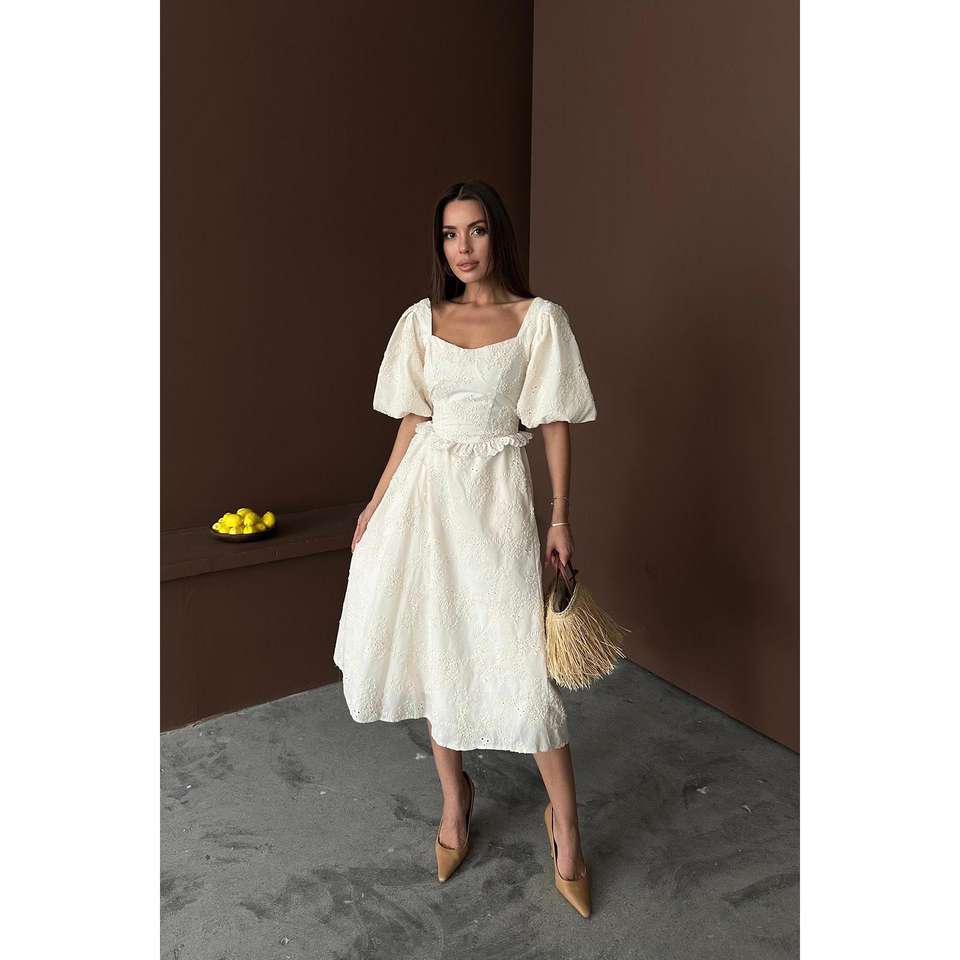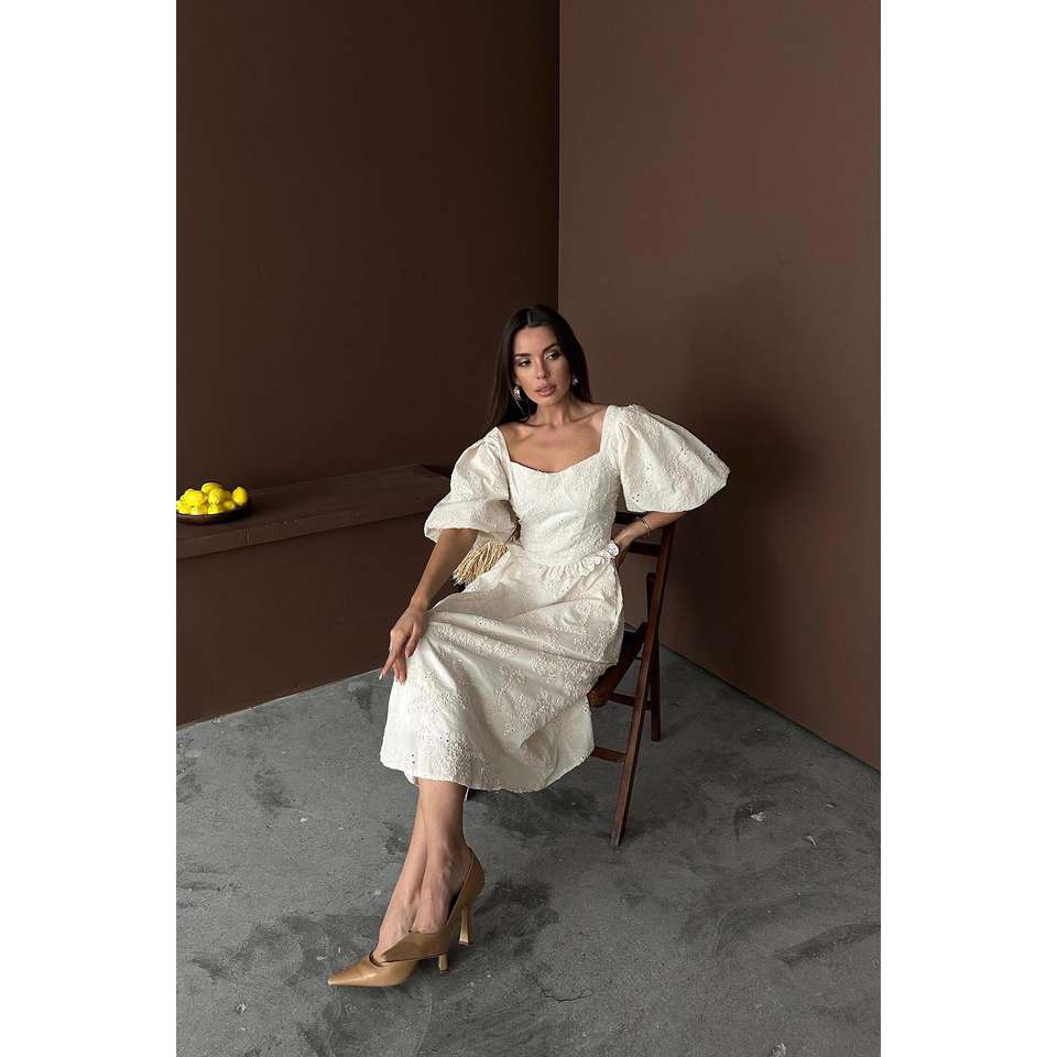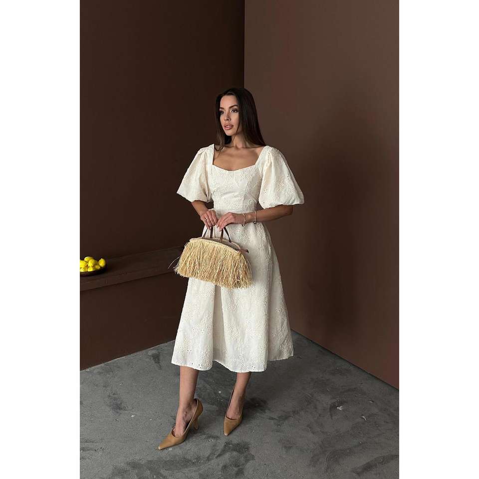 เดรสปักลายแขนบอลลูนสีเบจ คอเหลี่ยม ทรงเอไลน์ วินเทจ ทำมือจากผ้าออร์แกนซ่า สำหรับงานกลางคืน ขายส่ง