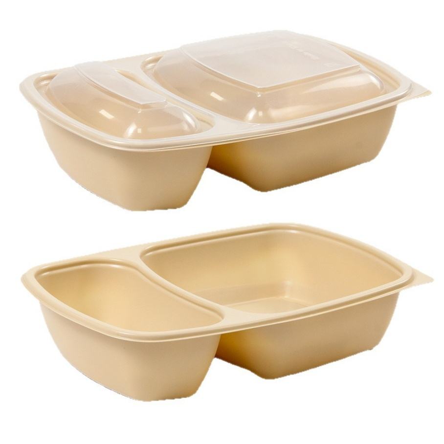 กล่องอาหารแบบใช้แล้วทิ้งสีเบจสำหรับขายส่ง เกรดอาหาร PP 950 มล. กล่องอาหารกลางวันแบบอเมริกันพร้อมฝาปิด ช่องใส่สลัด ยี่ห้อ JIANIXN