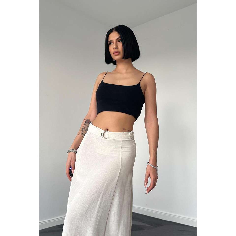กระโปรงหนังสีเบจแบบจีบปักเลื่อมสไตล์พันรอบสำหรับฤดูใบไม้ผลิ ผ้าถัก ขายส่ง