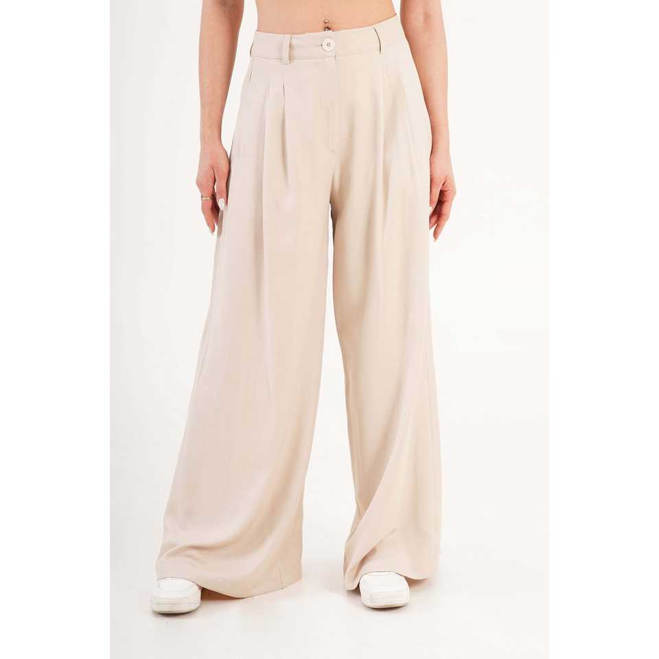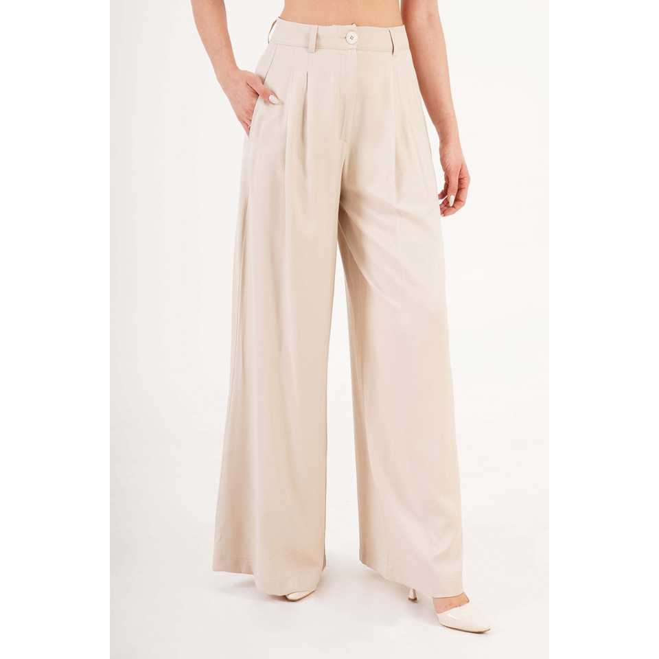กางเกงขายส่งสีเบจสำหรับผู้หญิง ทรงพลีท มีกระเป๋าคู่ ทรงหลวม ระบายอากาศ สไตล์เกาหลี ไซส์ XL