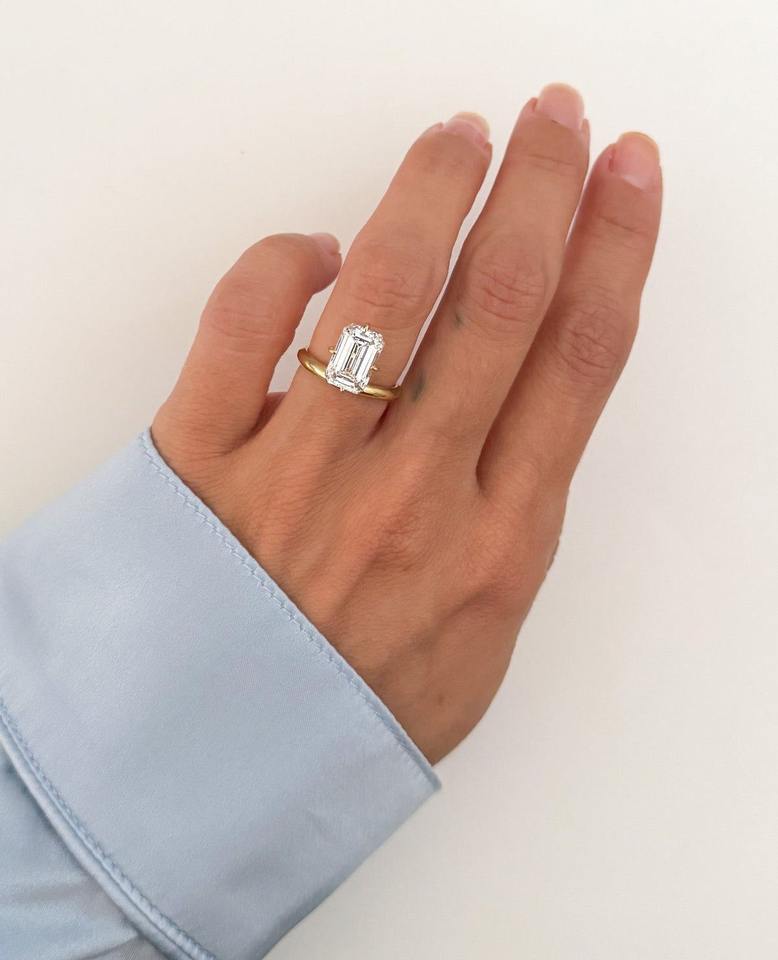 แหวนหมั้นเพชรแล็บโกรว์ทองคำขาว 10K คุณภาพดีที่สุด ทรงเหลี่ยมมรกต VVS2 สี E รับรองโดย IGI ทองคำที่ได้รับการรับรอง คุณภาพดี เป็นมิตรต่อสิ่งแวดล้อม