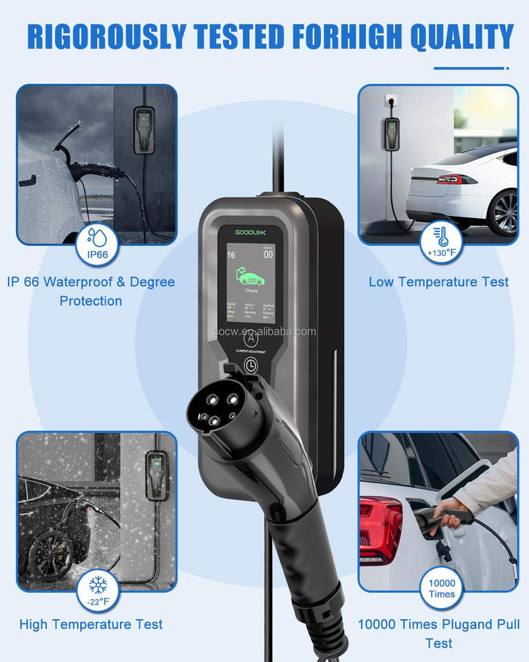 เครื่องชาร์จแบตเตอร์16A 11KW 3เฟสแบบพกพาพร้อม Type1/2 /gbtesla goodlink