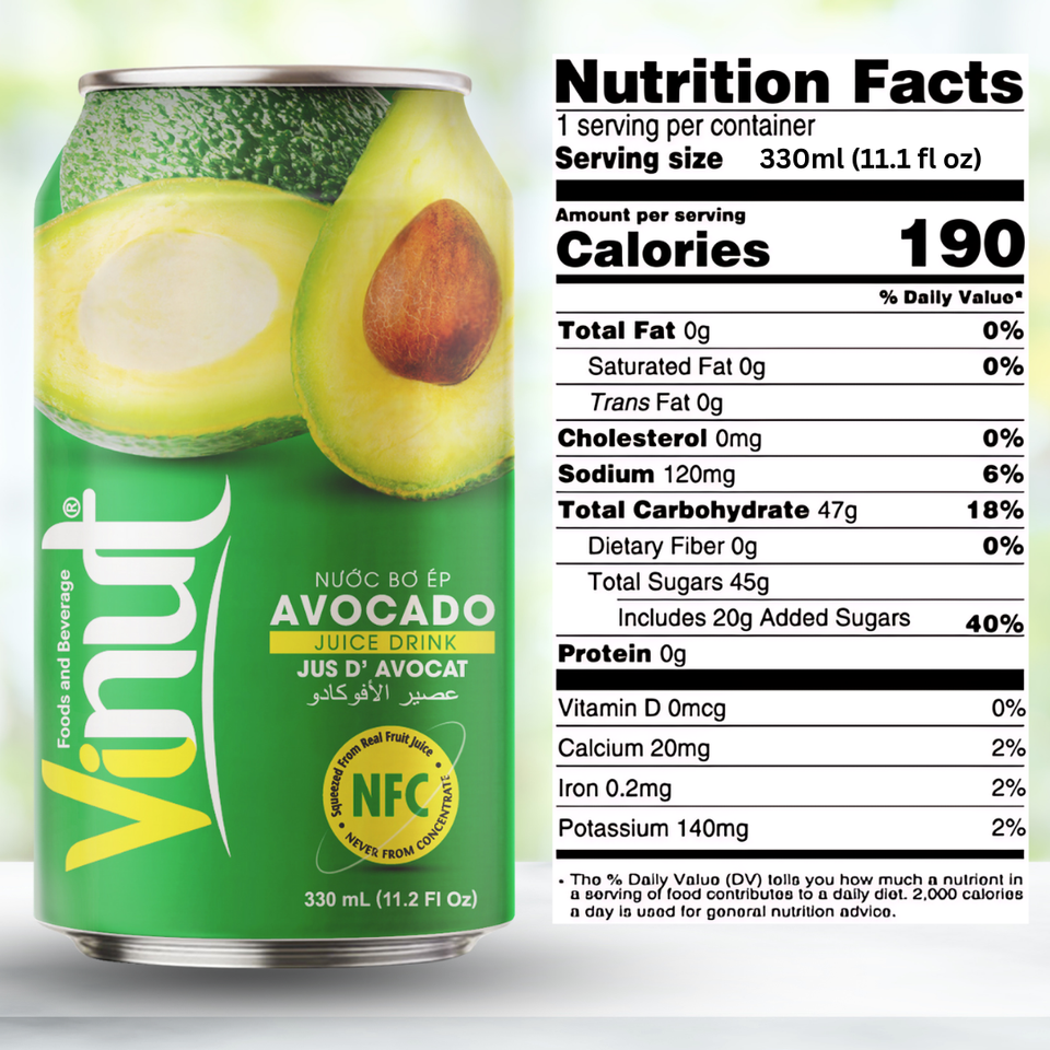 เครื่องดื่มน้ำผลไม้อะโวคาโด330มล. (11.1 floz) vinut Vietnam โรงงานตัวอย่างและการออกแบบฟรีฉลากส่วนตัว (oemodm)