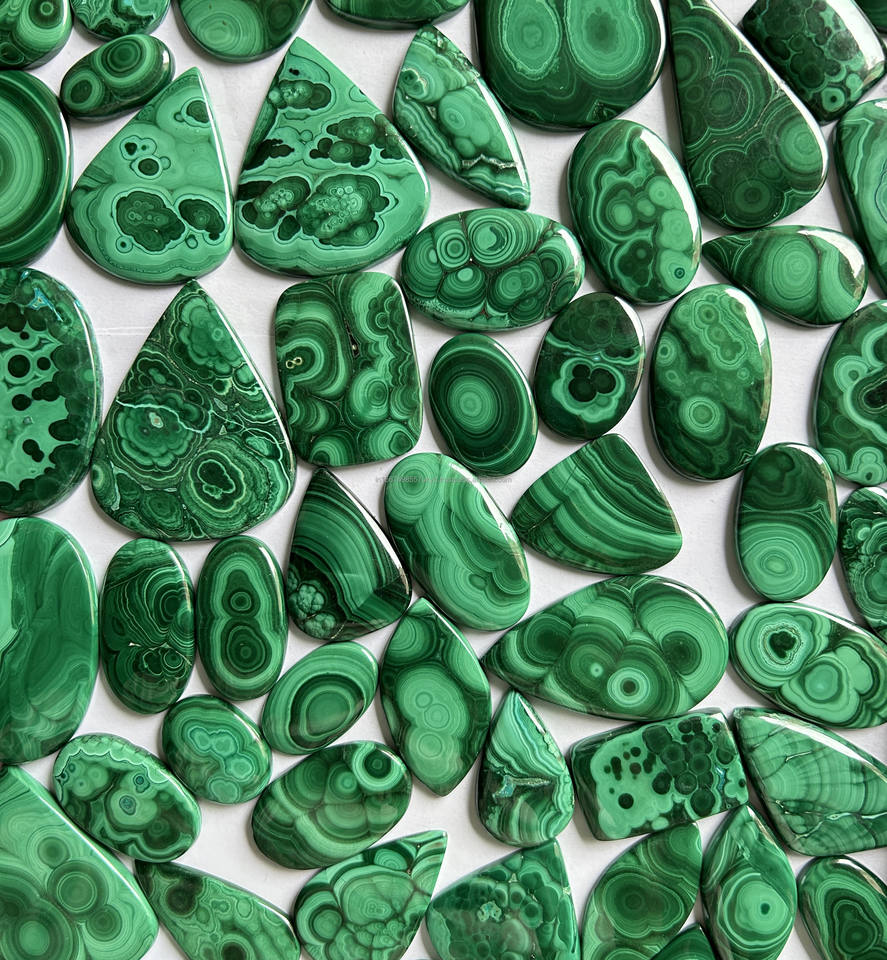 พลอยมาลาไคต์ธรรมชาติทรงหลากหลาย ราคาส่งที่ดีที่สุด ARHAN GEMS ราชสถาน อินเดีย ขนาด 10-40 มม. น้ำหนัก 2-10 กรัม สำหรับทำเครื่องประดับ