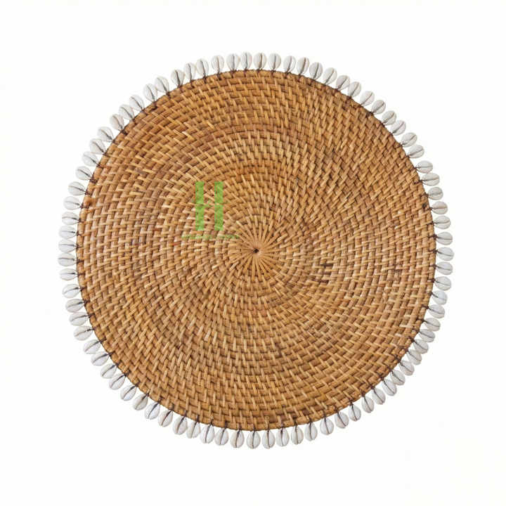 แผ่นรองจานหวายราคาส่งที่ดีที่สุด แผ่นรองจานหวายรูปดอกไม้ ของตกแต่งผนังแบบโบโฮ แผ่นรองจานหวายแบบแขวน OEM