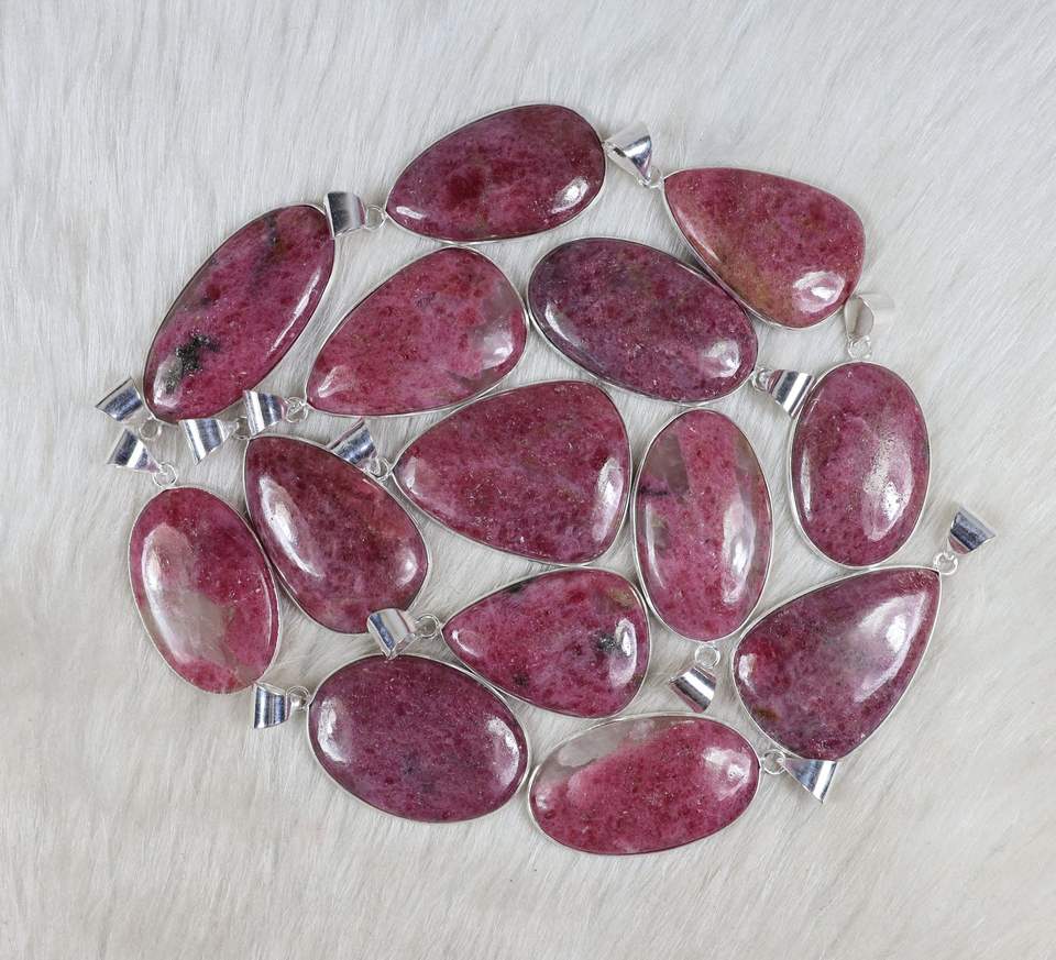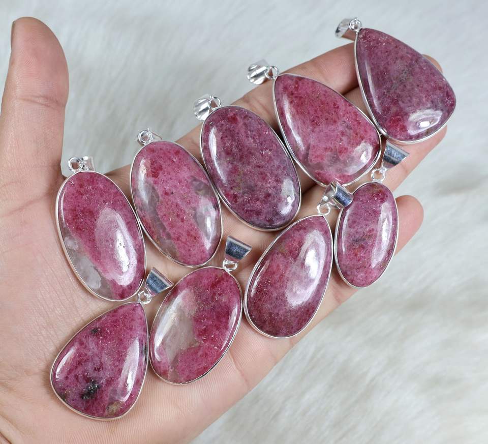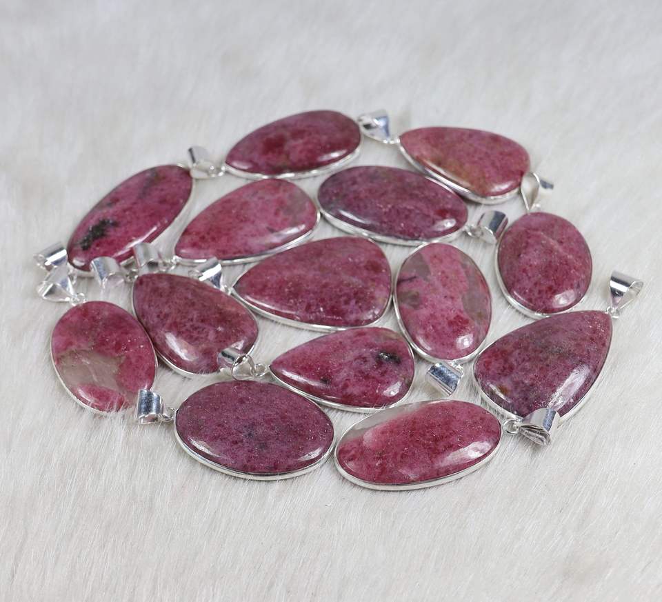 จี้พลอยโรโดไนท์แบบแฮนด์เมดคุณภาพสูงขายส่งเครื่องประดับแบบหนามเตย