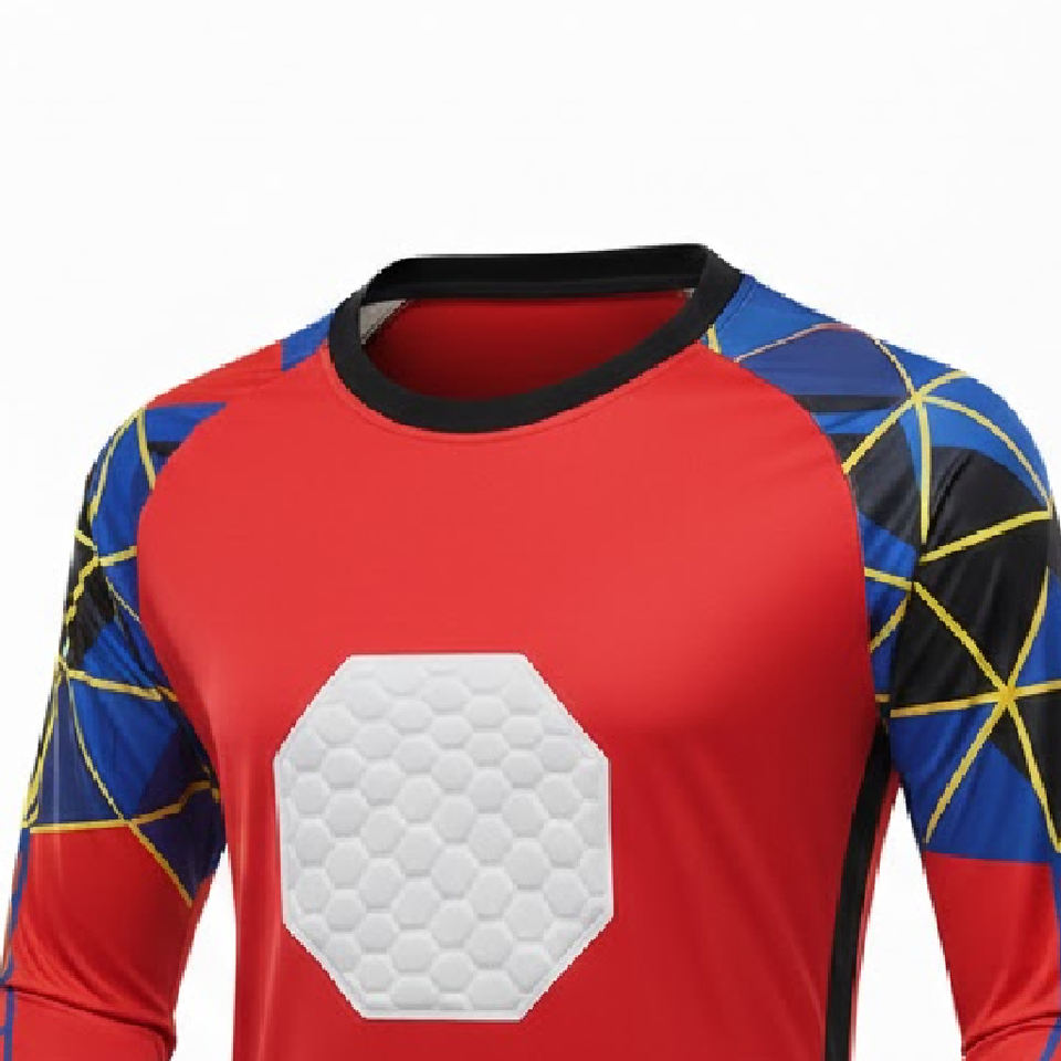 ชุดยูนิฟอร์มผู้รักษาประตูฟุตบอลคุณภาพดีที่สุดสำหรับขายส่ง ระบายอากาศได้ดี ออกแบบเองได้ พิมพ์ลายแบบซับลิเมชั่น ผ้าโพลีเอสเตอร์ 100%