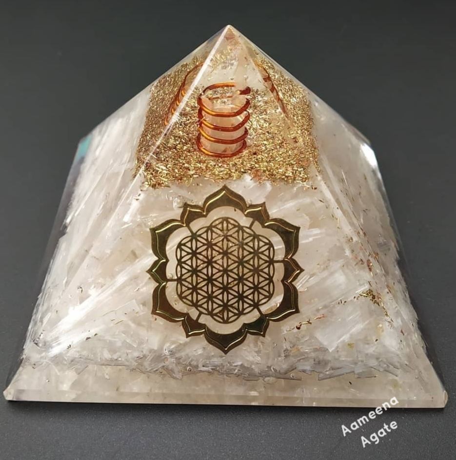 Selenite orgonite พีระมิดผลึกบำบัดจากธรรมชาติ