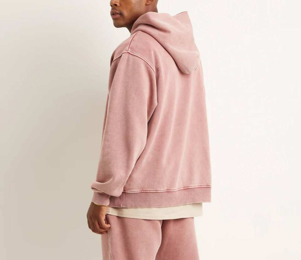 เสื้อฮู้ดดี้ย้อมสีแบบแอซิดวอชขายส่งยอดนิยม สีดำล้วนสำหรับผู้ชาย สไตล์สตรีทแวร์ใหม่