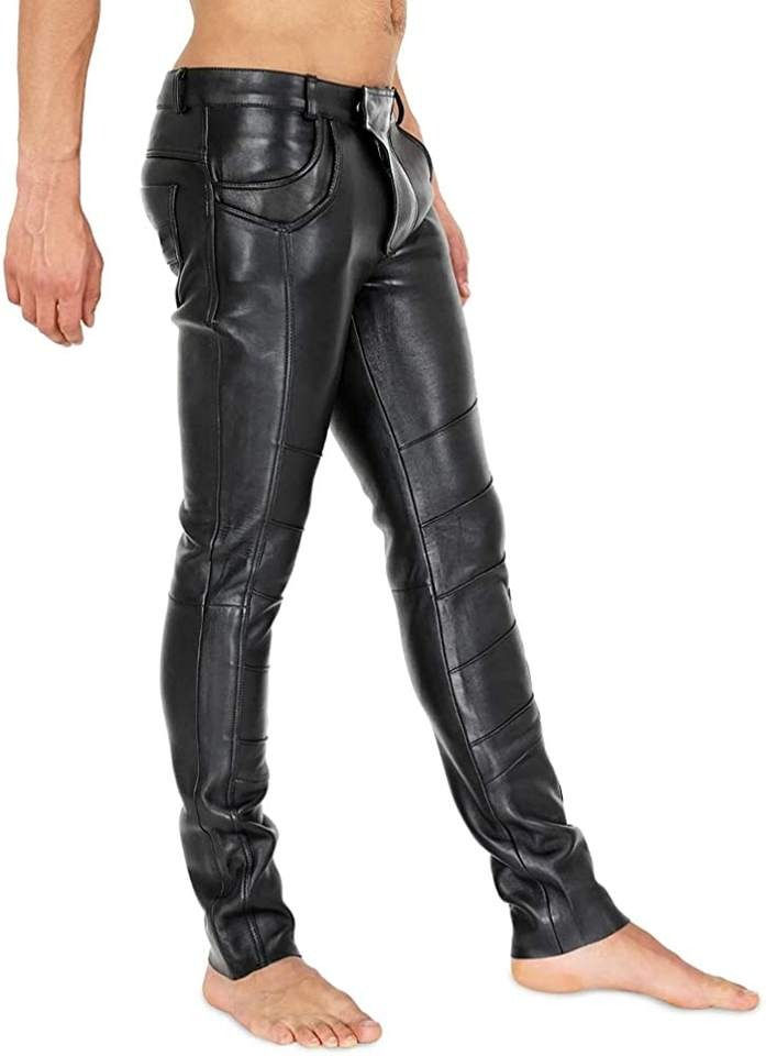 กางเกงหนังลำลองเข้ารูปของผู้ชายผ้าแคนวาสหนังวัวสีทึบกันลมระบายอากาศได้ดีเป็นมิตรกับสิ่งแวดล้อม