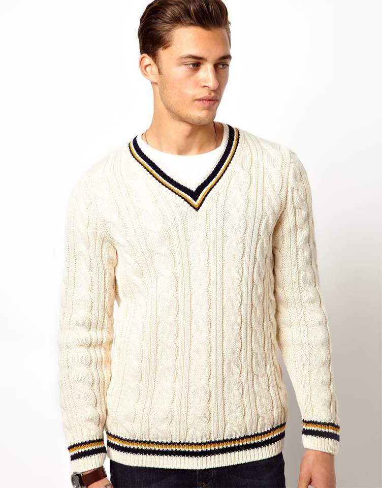 เสื้อสเวตเตอร์ถักคอวีสำหรับผู้ชาย