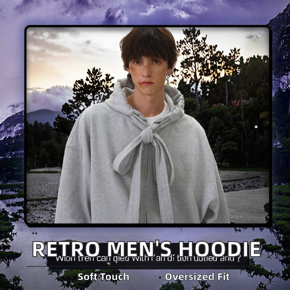 สเวตเตอร์มีฮู้ดสำหรับผู้ชายเสื้อสเวตเตอร์ถักแบบย้อนยุคอเมริกันขนาดใหญ่สีทึบฤดูใบไม้ร่วง