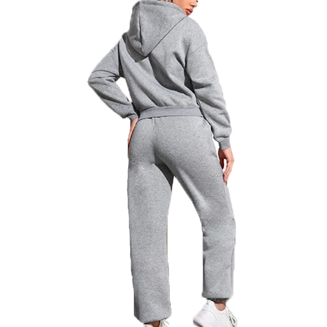ชุดวอร์มมีฮู้ดสำหรับผู้หญิงขายส่งยอดนิยมสำหรับฤดูหนาว ชุดออกกำลังกายสองชิ้นแบบหนา พร้อมโลโก้สั่งทำได้สำหรับทั้งชายและหญิง