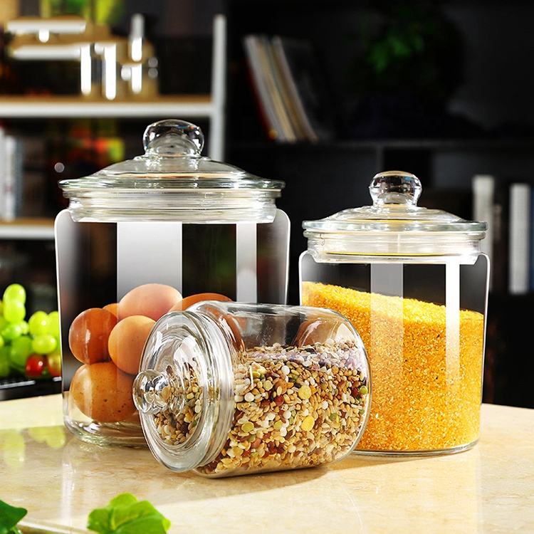 ขวดแก้วใส่อาหารแบบใสขนาดใหญ่พร้อมฝาโดมสำหรับใส่ลูกอมช็อคโกแลตสำหรับใส่ในตู้กับข้าว